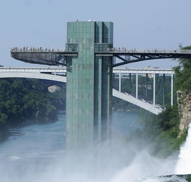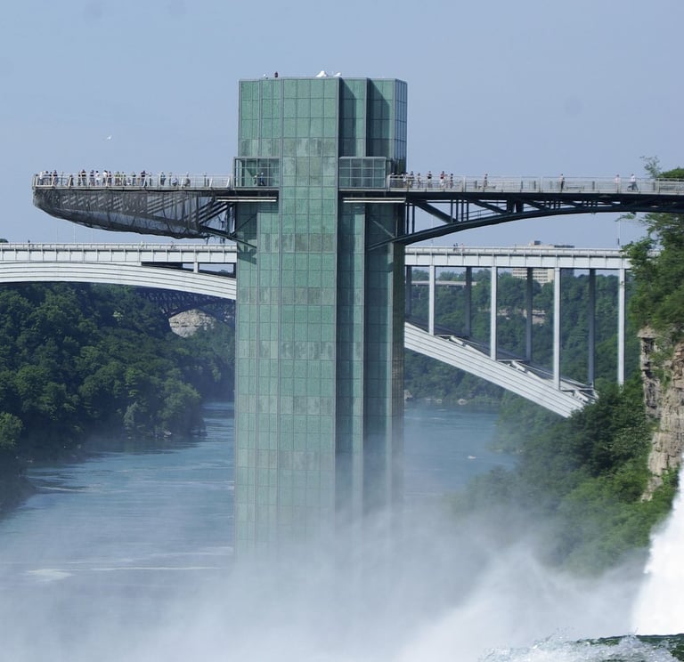 On the U.S. side at Prospect Point, this tower projects out over the gorge so you can see all three waterfalls beautifully.