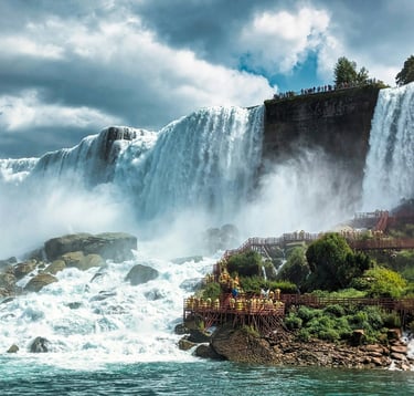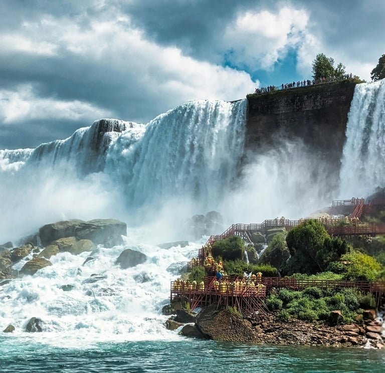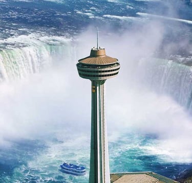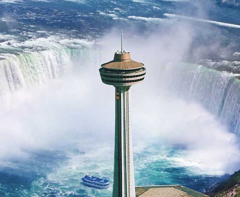 Right at the edge of Horseshoe Falls on the Canadian side. Feel the power and mist up close, and access “Journey Behind the Falls” for views from behind the rushing water.