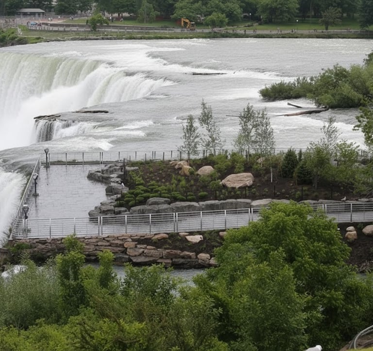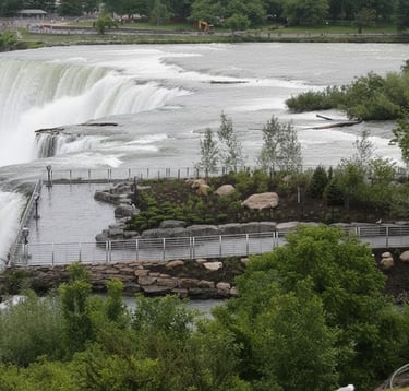 A tiny island between American Falls and Bridal Veil Falls; from here you’re just feet from both cascades and can very much feel their force.